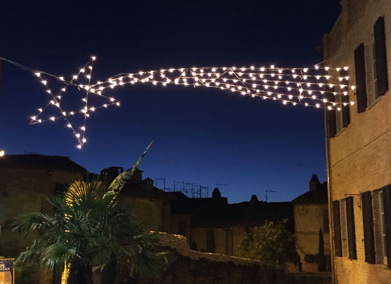 The town is famous for its Nativity Scene and so we visited that this morning. Quite an installation. It is spread out over several rooms. On entering you see an area dressed as a home office, with all the paraphernalia of the modern computer age, but the monitor is replaying the attack on the Twin Towers…. There follows a tableau on refugees and the lack of tolerance and love in the world and then there are rooms full of the Nativity story created as miniature landscapes with beautiful model animals and characters. The lighting slowly changes from dawn scenes to desert nights. Finally, there is a model of the town and examples of work by local community groups. We entered thinking that this was just going to be a cheesy Christmas show and left feeling quite moved and depressed about the state of the world currently. Which, if it encourages just some of those who visit to be more tolerant and loving, then “well done” Citta della Pieve.