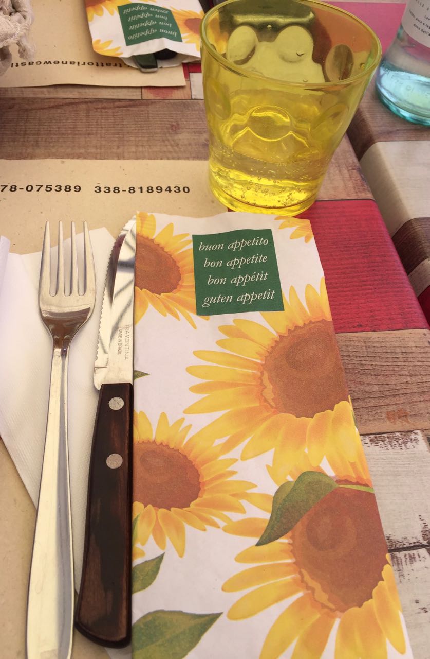 It was a lovely evening and so we ate outside at Da Laura’s, our local fish restaurant. A simple plate of linguini with scampi for me and a seafood spaghetti for Jamie. Perfect.