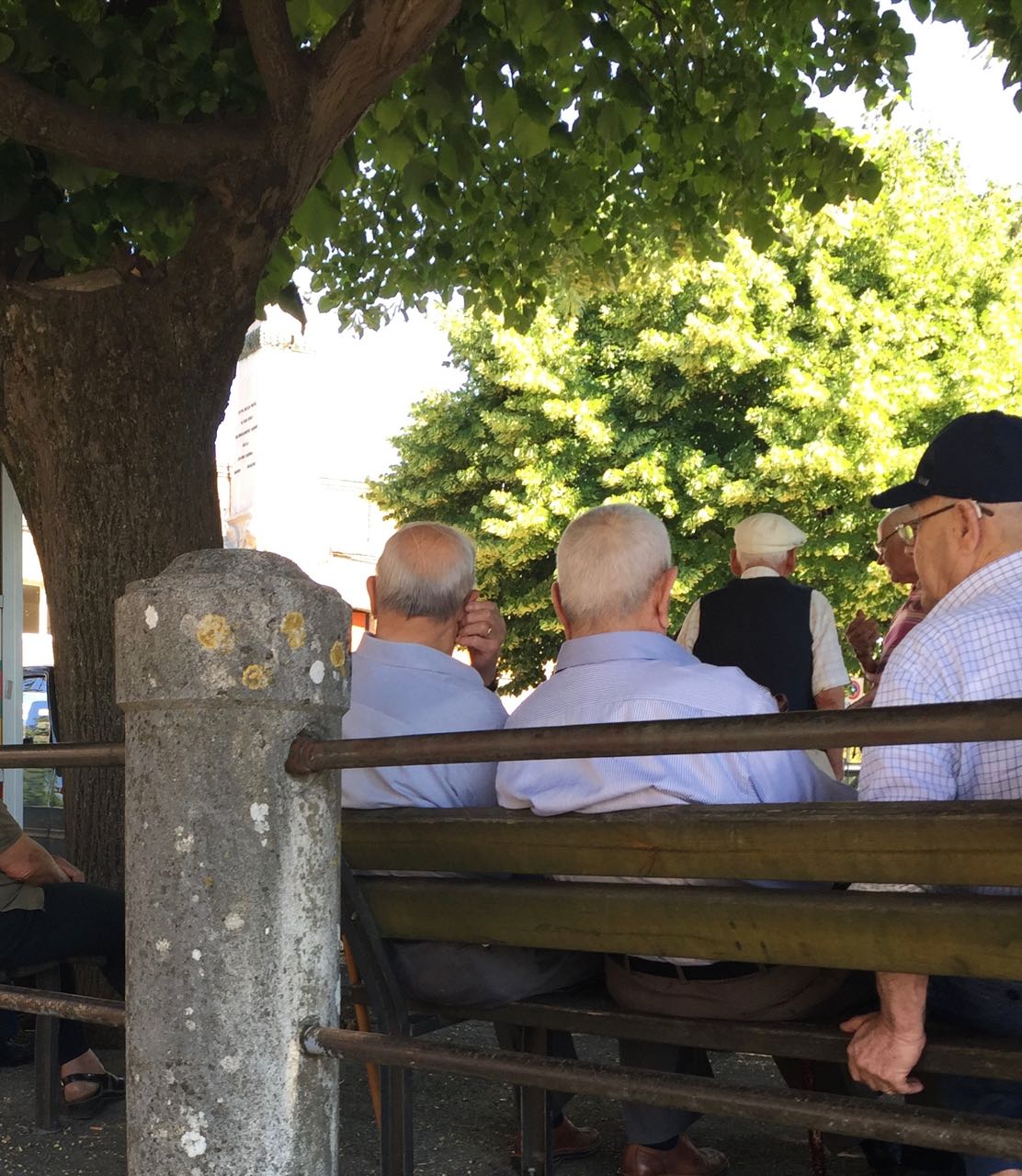 Elderly residents have occupied the benches along the tree lined avenue and discuss the merits or otherwise of the young people that pass by in their groups of friends. The girls in their t shirts and shorts and the boys with their girly haircuts or short back and sides with a kind of birds nest effect left on the crown. Think I am getting old. Cafes are full too with families and couples and groups of friends as today is Holy Communion day and people are waiting for the little children to exit the church in the square.