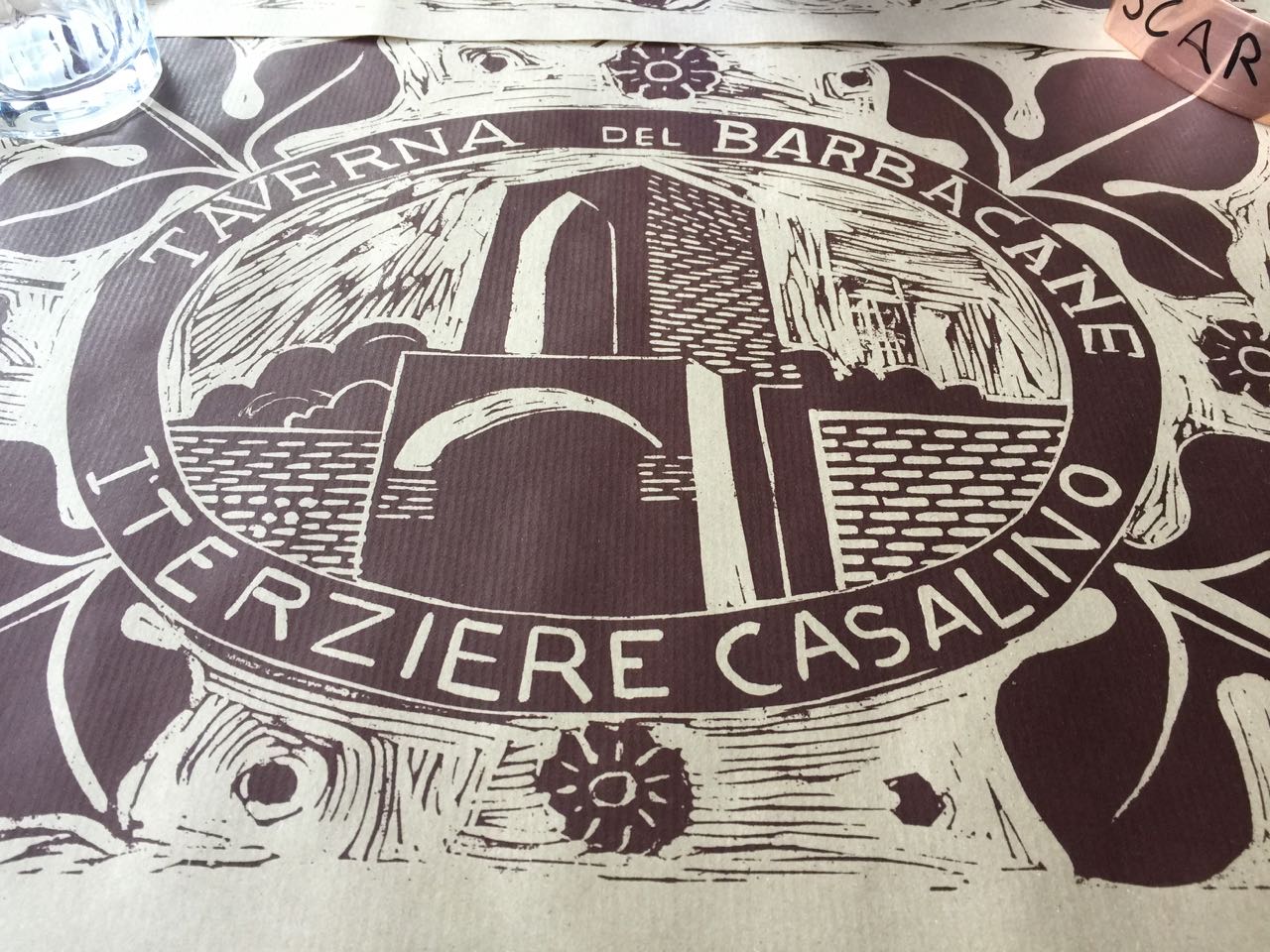The celebrations began last night with a meal based around flowers. We managed to get two places through our builder, whose brother’s wife (stay with us) is a cook for their clubhouse. We arrived and were served an aperitif of punch with mint and a paper cone filled with deep fried sage leaves, acacia flowers and courgette flowers. We were shown our table and service began with rose wine, mineral water and our first course of fresh tomato stuffed with goats cheese and flowers on a bed of tarragon pesto and nasturtium flowers. Next came a creamy chickpea soup with baccalà, crispy cavolo nero strips and rosemary flowers. Then ravioli stuffed with courgette and mint in a creamy pecorino cheese sauce with courgette flowers. The main course was boned and stuffed rabbit wrapped in pancetta with saffron mashed potato. The final course after the unlimited wine and water accompaniment was a yoghurt mousse with crystallized rose petals and dog-rose syrup, and a glass of local passito dessert wine. This gastronomic feast was only 25 euros a head and Rita (our builder’s sister-in-law) kept checking on how we liked everything and also chatting with the local mayor on the neighbouring table. There were around 140 people served that night by a team of children and young people all dressed in medieval costume. These were the children, no doubt, of the members of this terziere, and all having a fun time together.