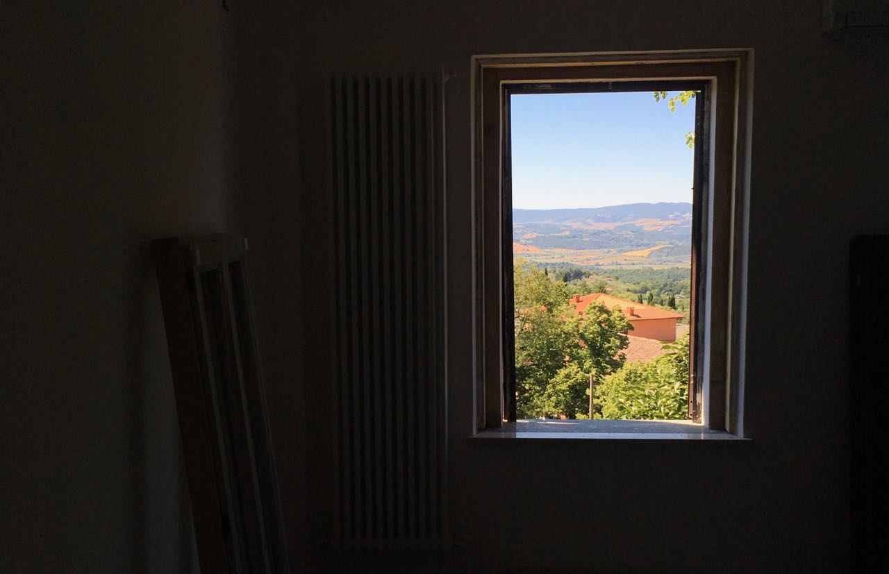 We have been camping in the house over the weekend as our friend needed her flat back. The air beds have been inflated and a make-shift table of plastic storage boxes is now our dining area. How much better than when we here before, cooking on one ring and having one grotty bathroom with a tepid shower. We now have a swishy kitchen, designer bathrooms x 2, and an outside dining table under our very own grape vine with a stunning view over the Chiana valley.