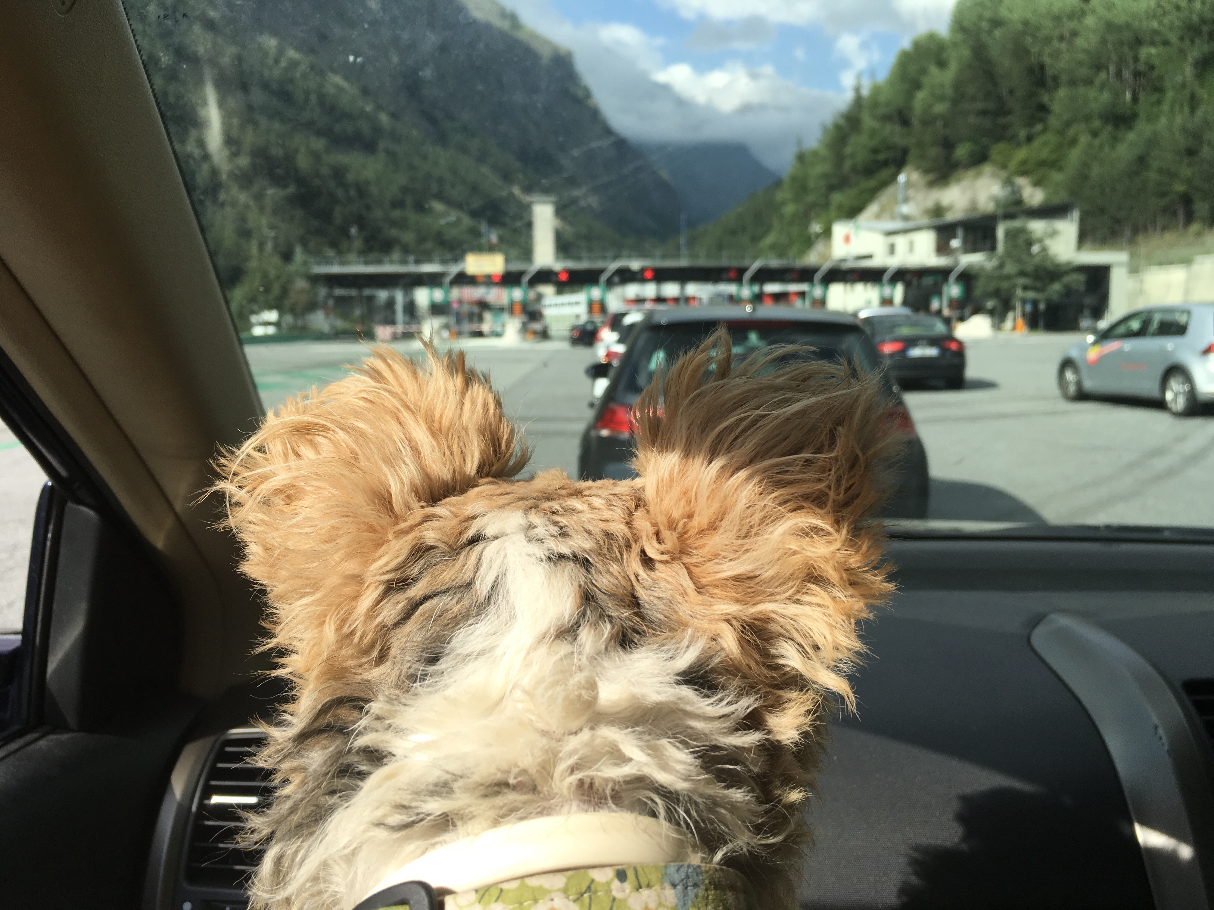 Instead of going through the Mont Blanc tunnel, as it was a lovely sunny day we thought we would take the scenic route over the Petit San Bernard pass. It was lovely and saved us over 40 euros in tunnel fees, quite apart from allowing Daisy the chance to paddle in a mountain stream, which she enjoyed hugely. After several dozen hairpin bends we finally reached the Italian side and the town of San Vincent, another place we have stayed in before. So, after settling in to the Hotel La Poste, we went to the local wine bar where they stock some great examples of Aosta wines as well as good food. Too tired for the speciality dish of toasted raclette cheese and all the trimmings, we opted for an antipasto plate of local salamis, hams and cheeses, Jamie then had the herb gnocchi with pancetta and I went straight to the violet panna cotta pud.